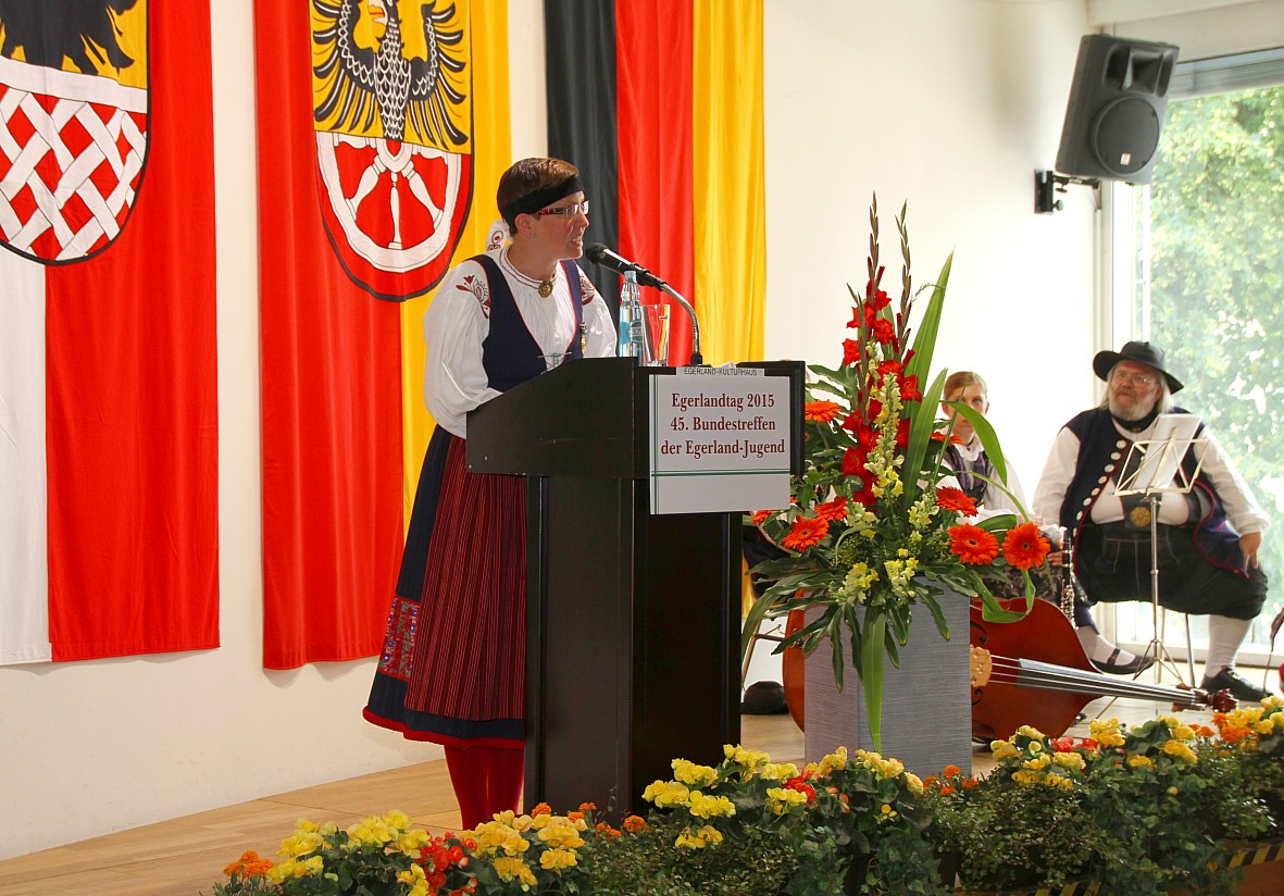 Bundesjugendführerin Christina Diederichs zeigte sich sichtlich erfreut und begeistert zugleich über die Realisierung dieser gemeisamen Veranstaltung unter dem Motto "Zukunft gemeinsam gestalten". Nicht ohne Stolz wies sie darauf hin, dass die Egerland-Jugend mit rund 125 Teilnehmern am "Egerlandtag 2015" angereist war.