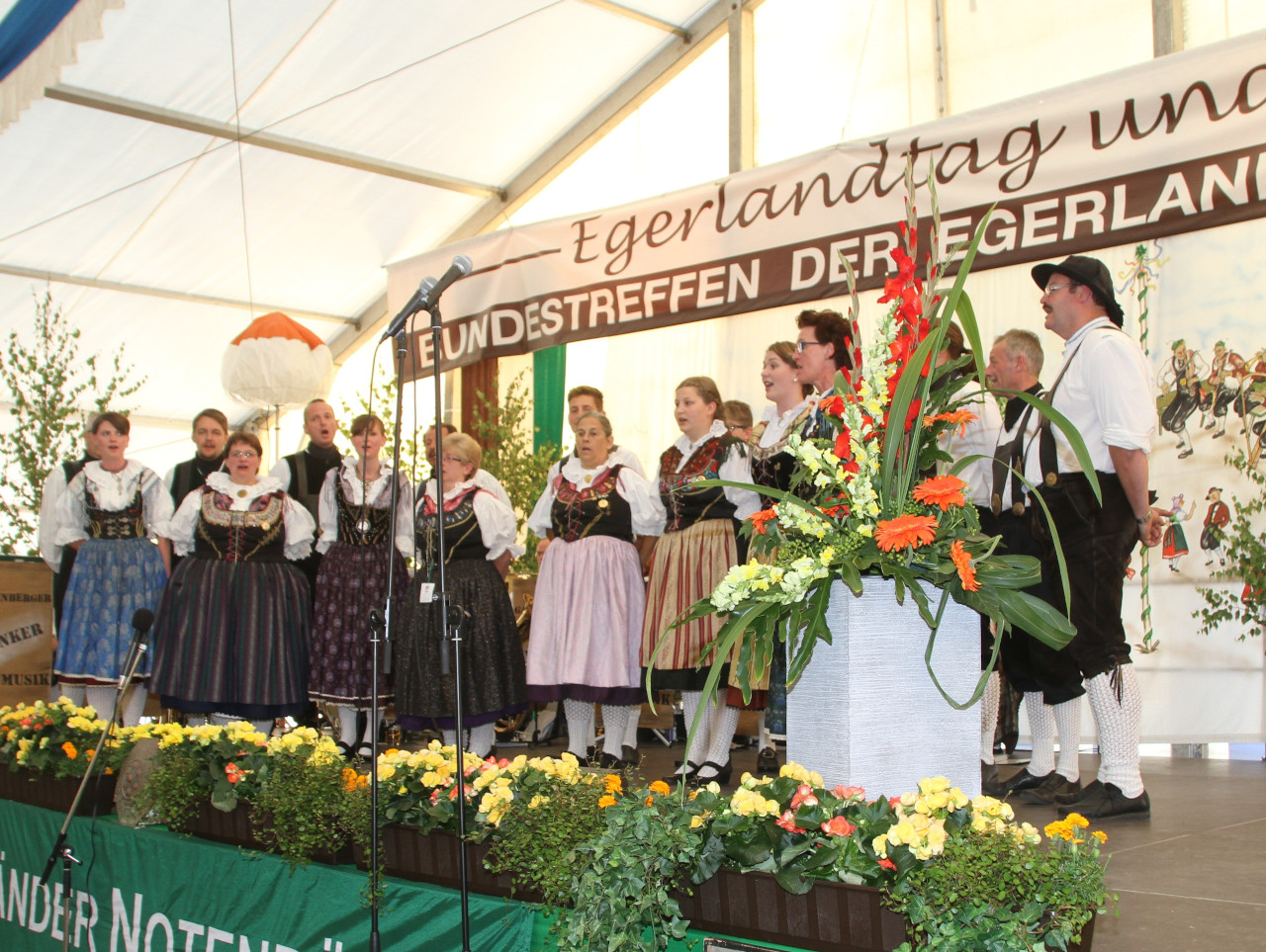 Unter seiner Leitung boten Sängerinnen und Sänger sowie Tänzerinnen und Tänzer der Egerland-Jugend aller Altersgruppen aus zahlreichen Regionen Deutschlands traditionelle und bekannte Egerländer Volkslieder und Volkstänze.