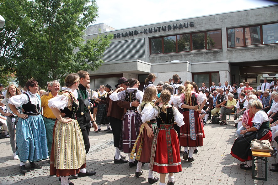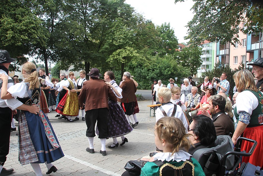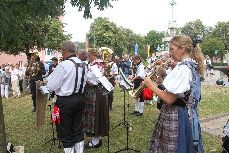 Offenes Tanzen, Singen und Musizieren am Egerland-Brunnen vor dem Egerland-Kulturhaus.
