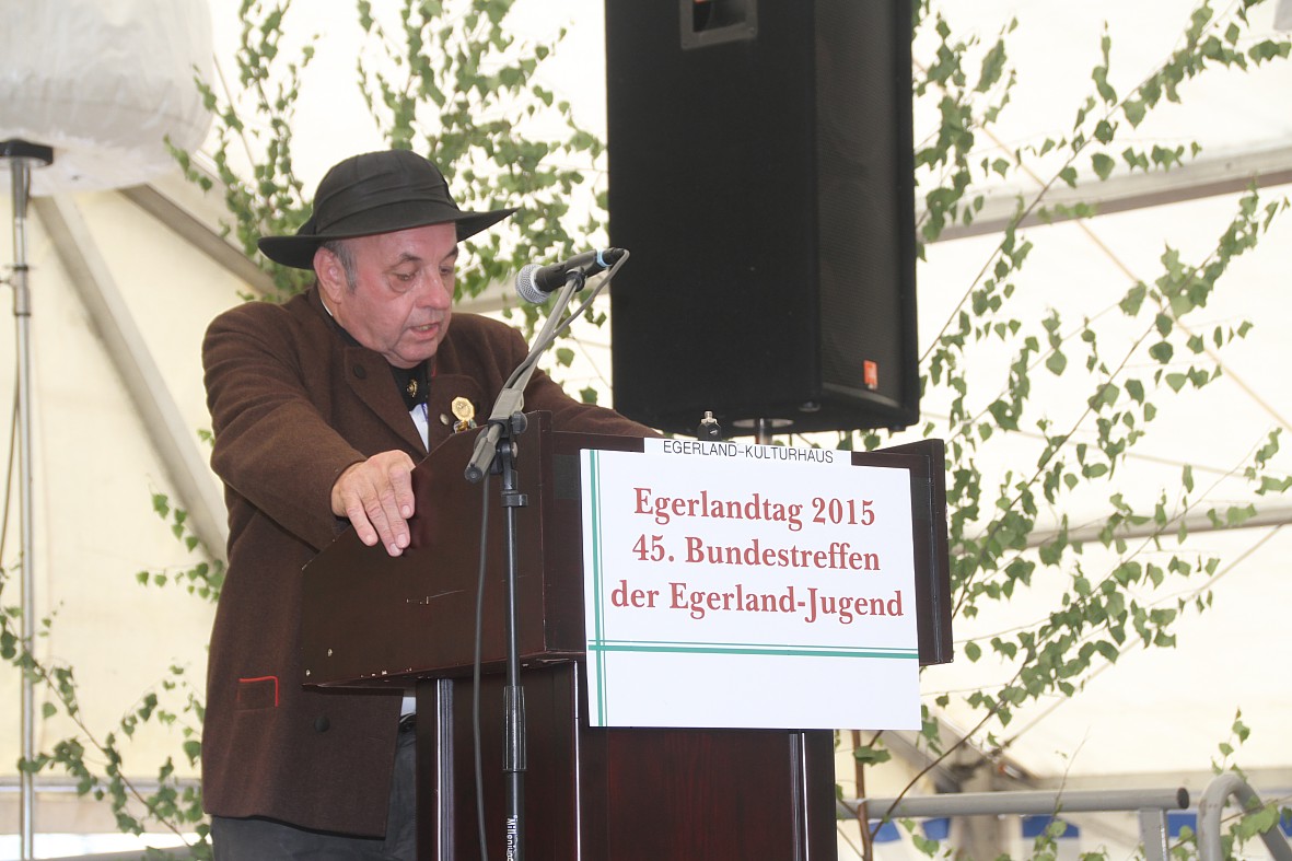 Bundesvüarstäiha Konsulent Alfred Baumgartner konnte zum ersten Egerlandtag in Kooperation mit dem 45. Bundestreffen der Egerland-Jugend zahlreiche Teilnehmer und Gäste der "Eghalanda Gmoin" aus Deutschland, Österreich und der Tschechischen Republik sowie aus Politik und Kultur begrüßen -, unter ihnen
