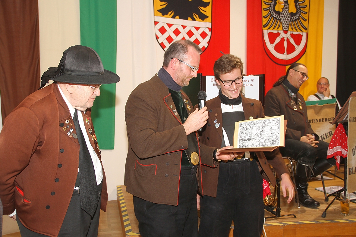 Bild links: Überreichung die Förderpreis-Urkunde an Marius Hammerschmied.